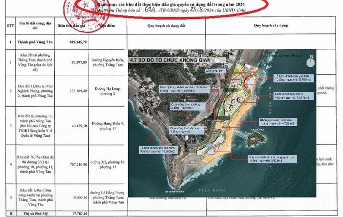 Bà Rịa – Vũng Tàu công bố đấu giá nhiều khu đất được duyệt quy hoạch, dự kiến thu 10.000 tỷ Cụ thể thành phố Vũng Tàu có 5 khu, gồm: Khu đất chợ Du lịch (cũ): Khu này hiện có tên là Khu thương mại, dịch vụ du lịch cao cấp phường Thắng Tam với quy mô nghiên cứu lập quy hoạch khoảng 2,9 ha. Khu đất...