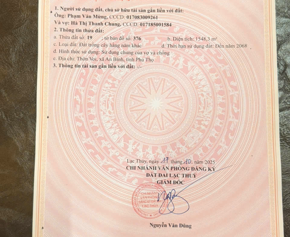 📣 BÃN ÄẤT CHÃNH CHỦ – CÓ Sá»” ÄỎ RIÊNG TẠI LẠC THỦY, PHÚ THỌ