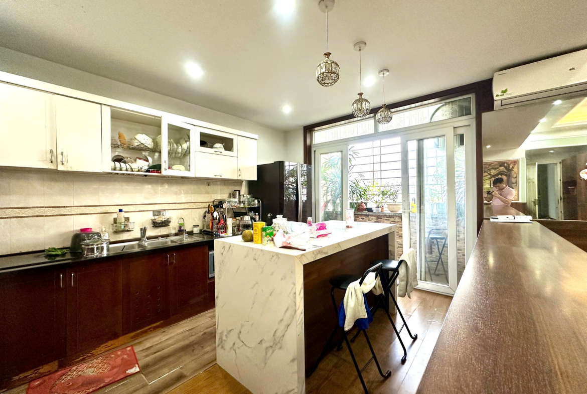 + Khu bếp mở rộng, có vách ngăn nhẹ, rất tiện sinh hoạt.