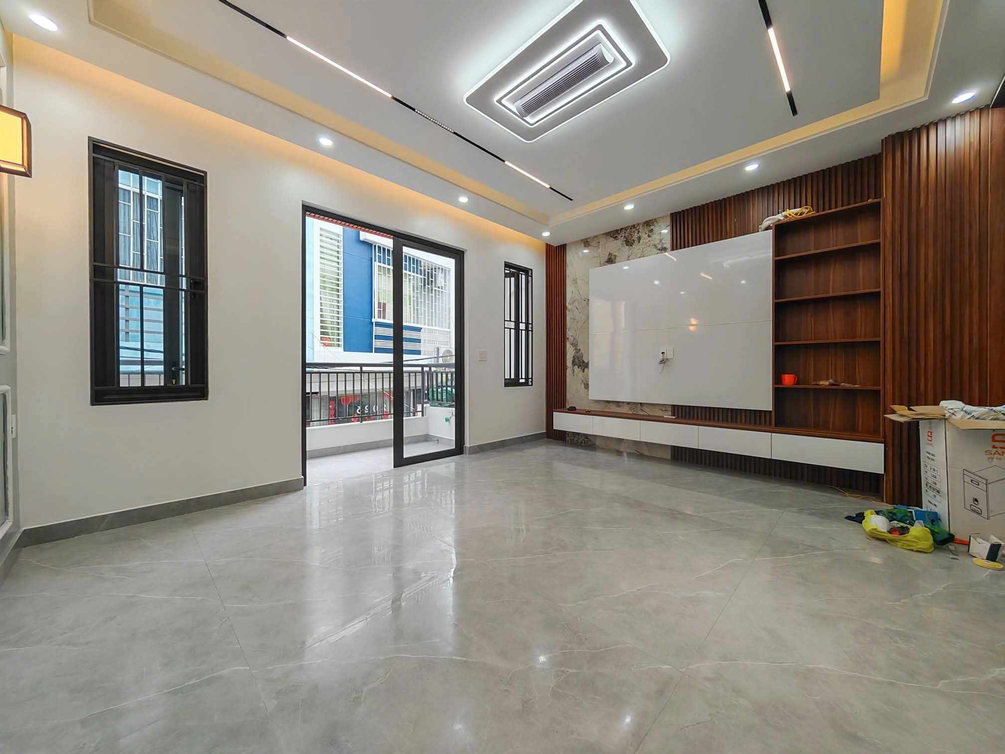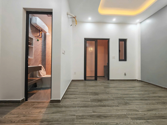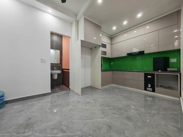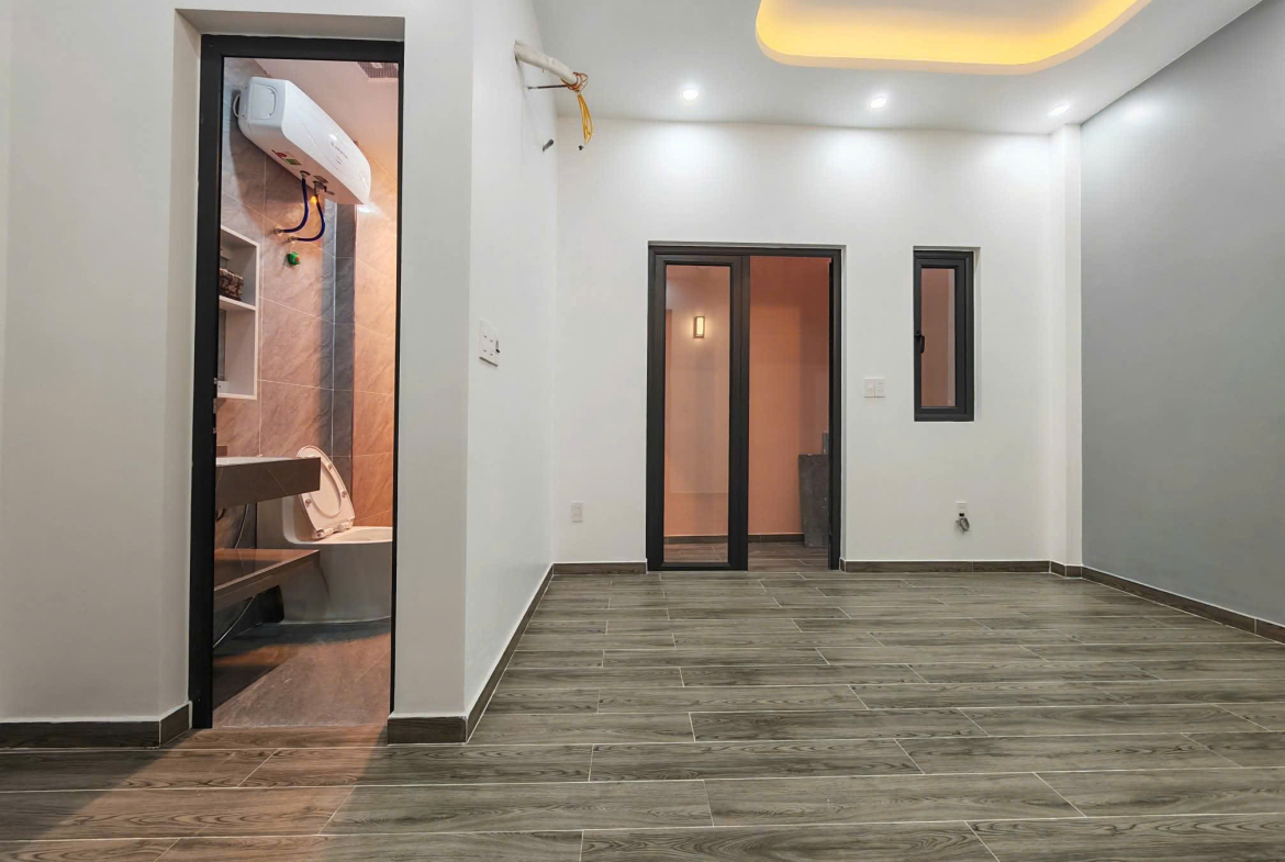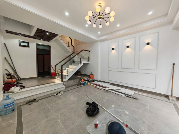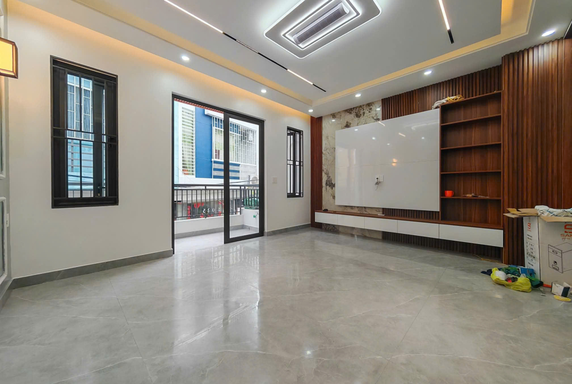 Nhà mới thiết kế hiện đại, diện tích 60m² (Ngang 5m). Ngõ thông rộng 5m, ô tô thoải mái quay đầu.