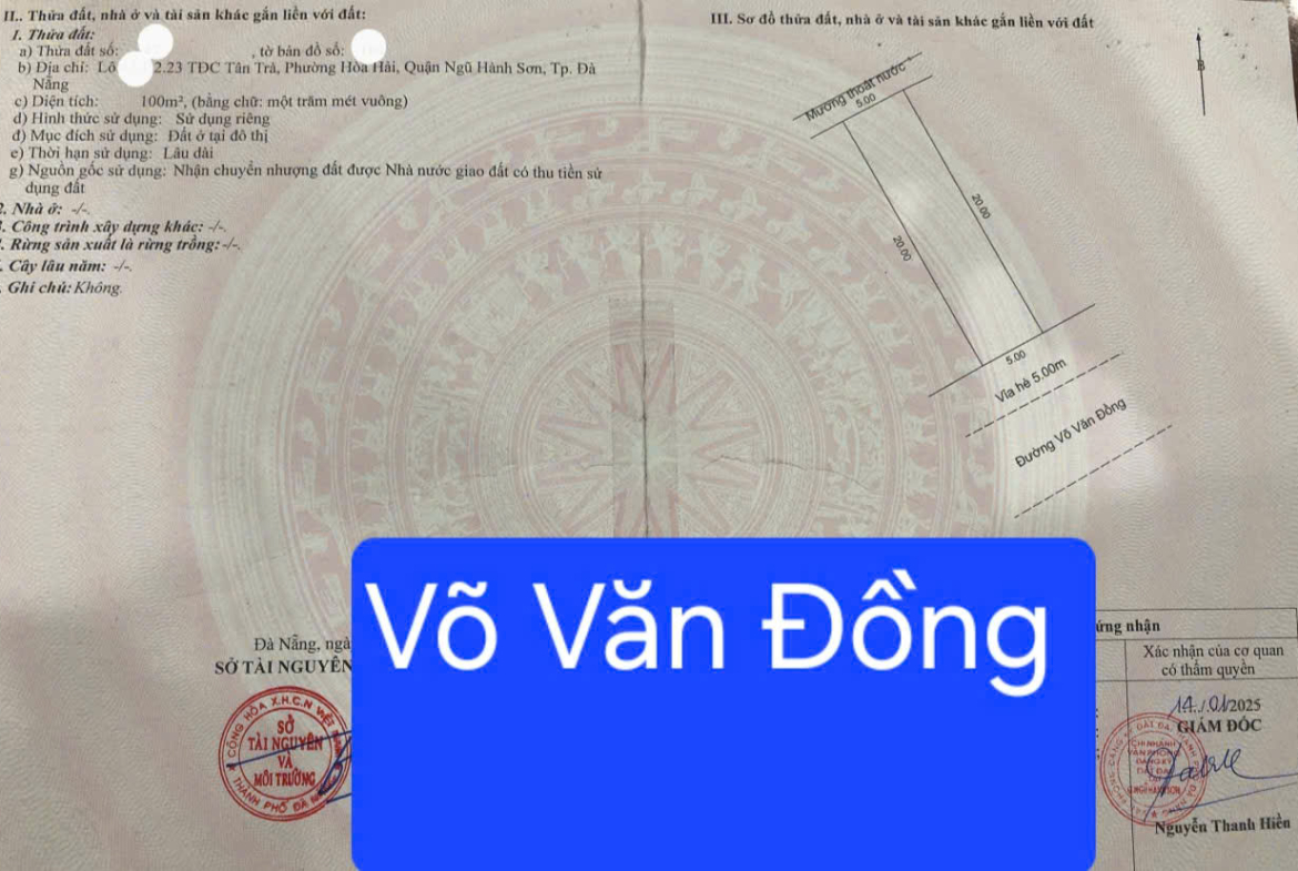 Bán đất đường Võ Văn Đồng – Gần bãi tắm Tân Trà