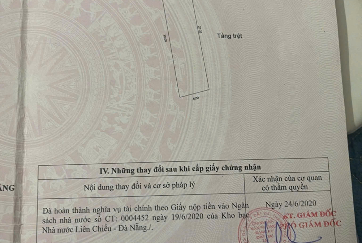 -Diện tích: 100 m2 ngang 5m vuông vức