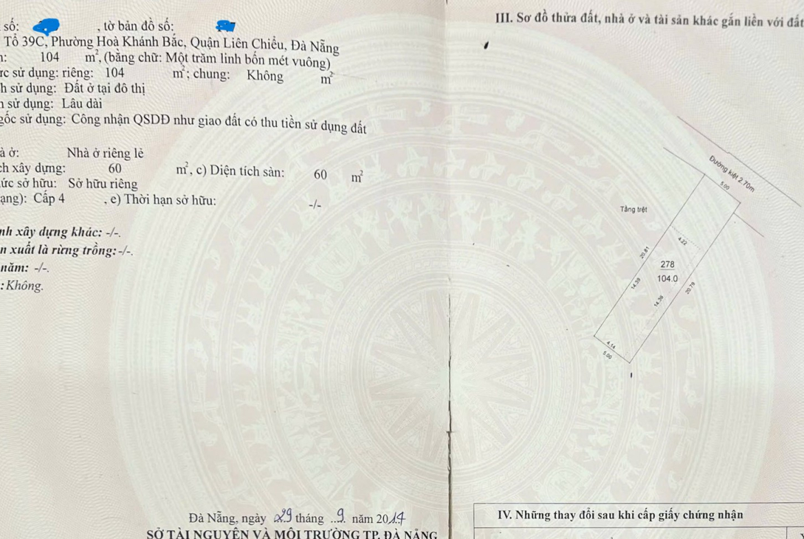 Diện tích đất 104 m²