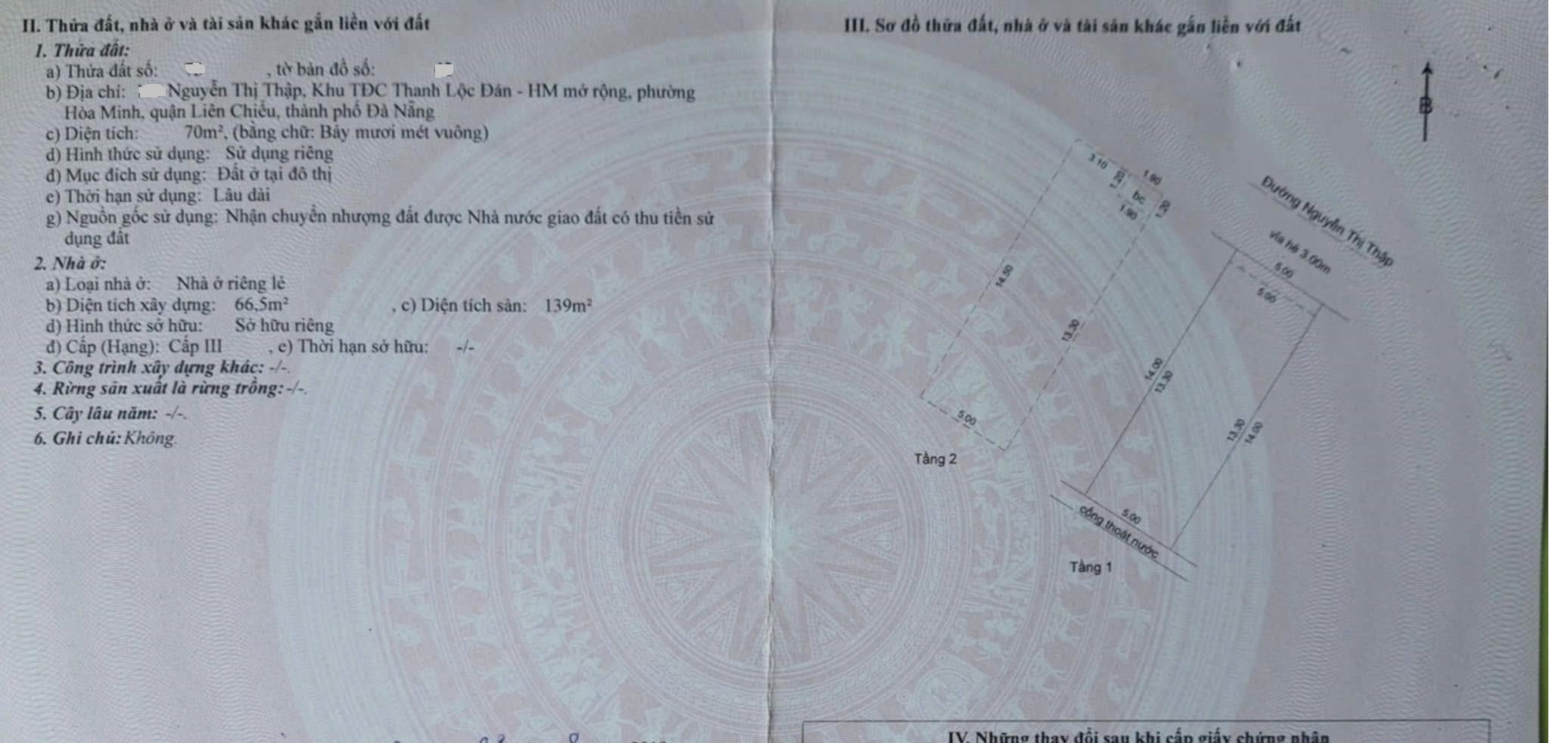 – DTĐ: 70m2 (5×14)m