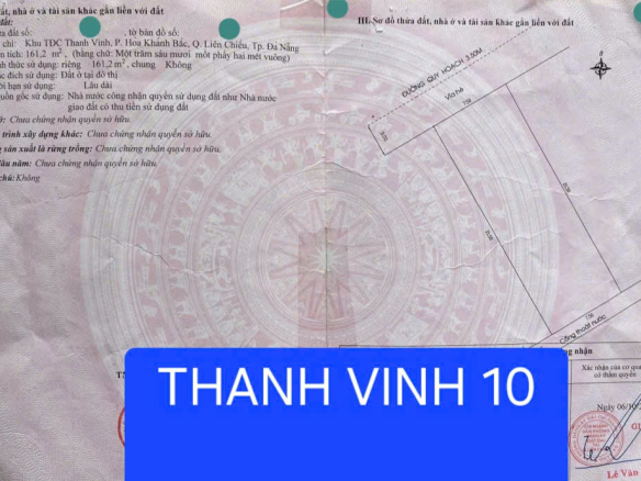 BÁN ĐẤT THỔ CƯ 162M2, THANH VINH 10, HOÀ KHÁNH BẮC, ĐÀ NẴNG