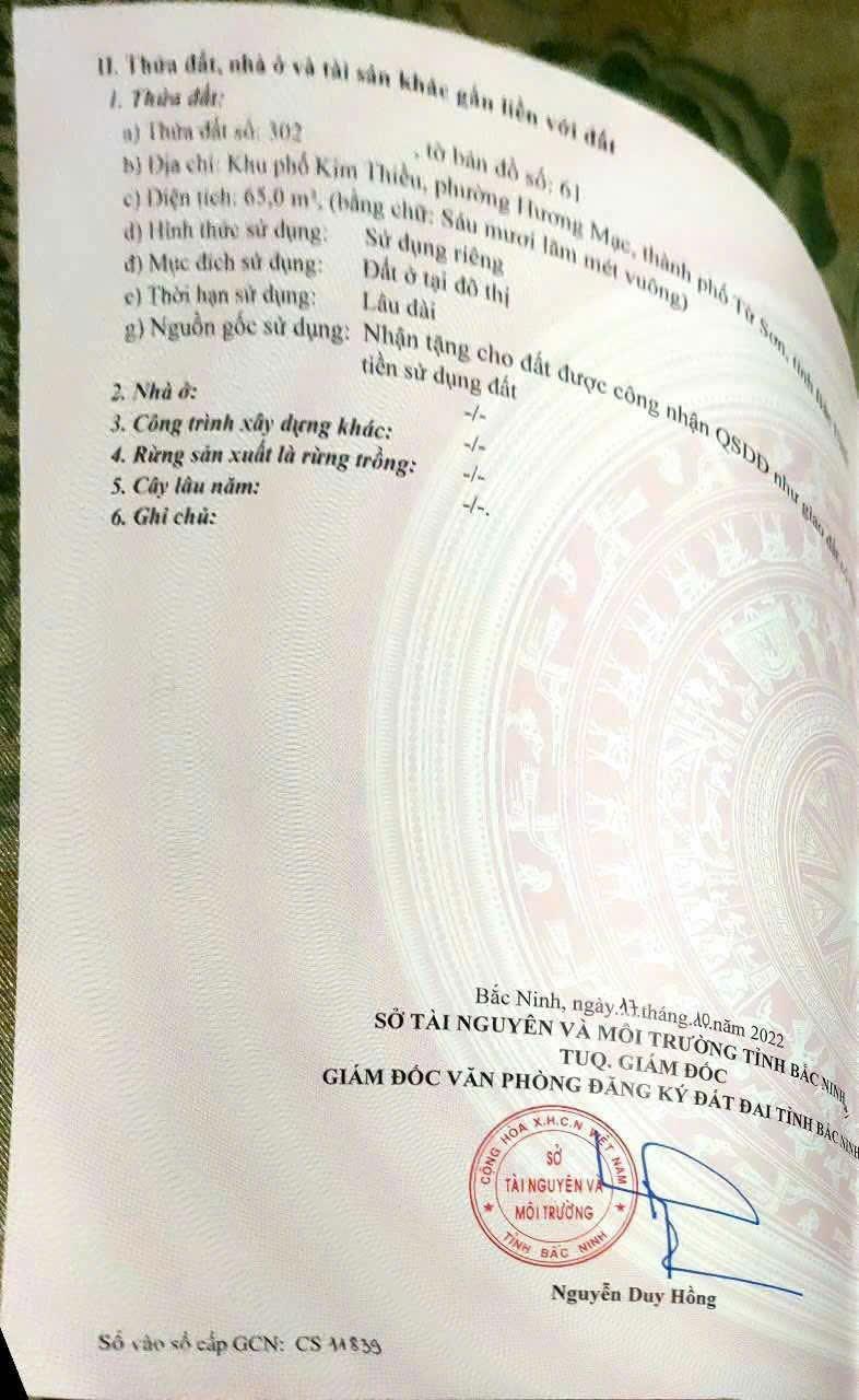 🔻 GIẢM SỐC 1 TỶ – Lô Đất Gần UBND Hương Mạc, 65m² Chỉ Còn 2 Tỷ 100!