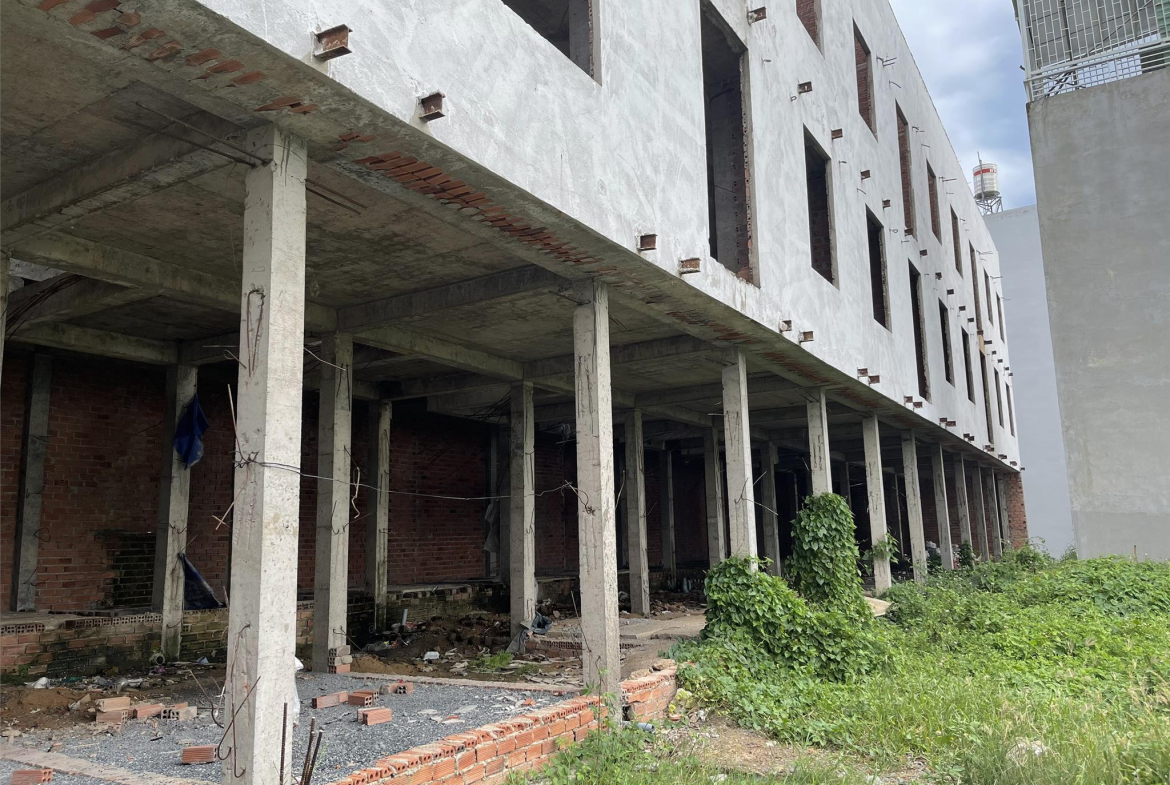 – 1 khu nhà 3 tầng đã xây gần xong phàn thô làm căn hộ cho thuê. Nhà xây ép cọc – đúc bê tông vĩnh cửu vô cùng kiên cố!