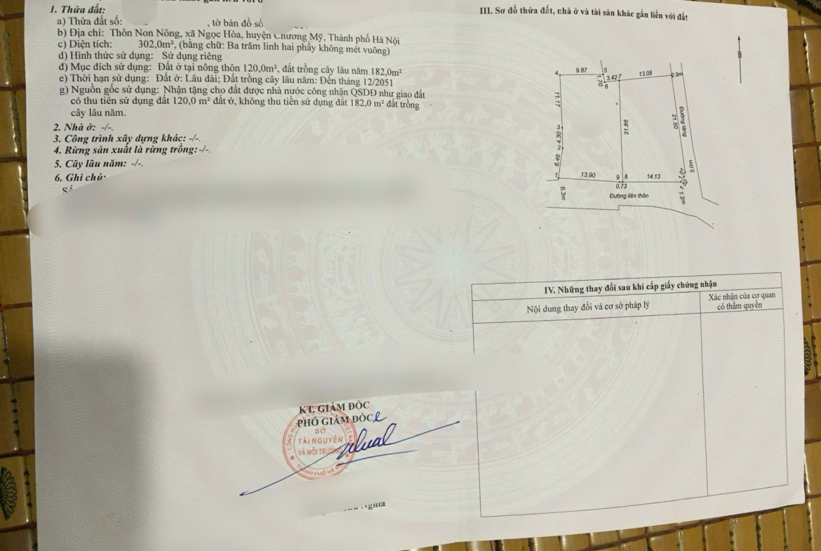 302m Trục chính Non Nông, Ngọc Hoà. Bám trục chính thôn, đường rộng hơn 7m dân cư đông đúc phát triển Sát cụm công nghiệp Phú Nghĩa, tiềm năng tăng giá rất tốt Đi ra quốc lộ 6 rất gần, phù hợp