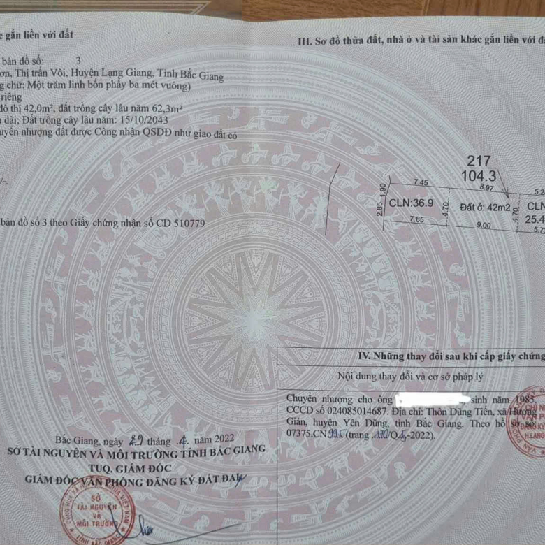 Thông tin pháp lý: Thửa 707, tờ bản đồ số 8