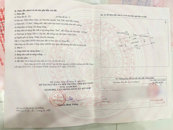 – Giá bán: Chỉ từ 3xx triệu, mức giá phù hợp cho một lô đất đẹp tại Yên Thế.