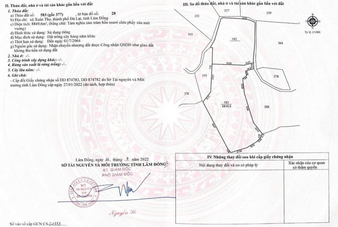 – Diện Tích: – Lô 1 : 8849,6m2 m (Sổ riêng)