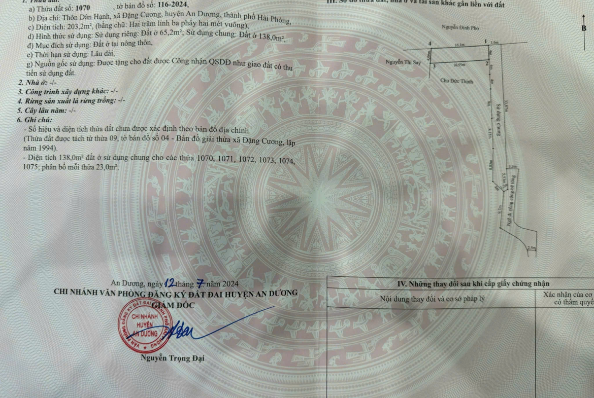 Bán 2 lô liền nhau giá chỉ 1 tỷ/lô Dân Hạnh, Đặng Cương