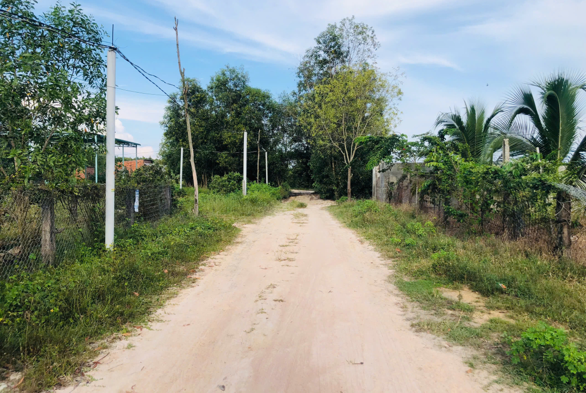 Hiện trạng: Trên đất có sẵn nhà nhỏ, hồ nước và nhiều loại cây ăn trái (dừa, mít, xoài,…). Đường đất rộng 4m, ô tô vào tận nơi. Nằm trong khu dân cư hiện hữu, điện nước đầy đủ.