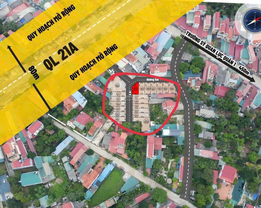 65.5m² Đất sẵn sổ hồng nằm ngay ngã tư trường Lục Quân, mặt hướng QL21 tuyến 2, đối diện cổng chợ to nhất Hoà Lạc. Dân cư sầm uất nhất Hoà Lạc hiện tại. Buôn bán mua sắm quanh nhà.