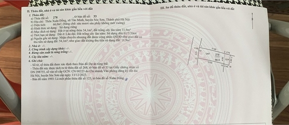Bán 66m2 đất Xuân Đồng, Tân Minh, Sóc Sơn, Hà Nội. Đường thông, ô tô vào đất.