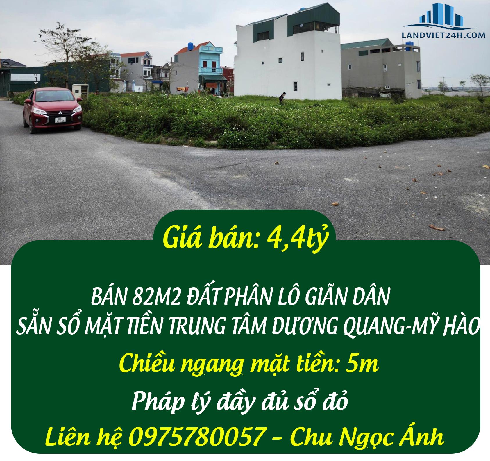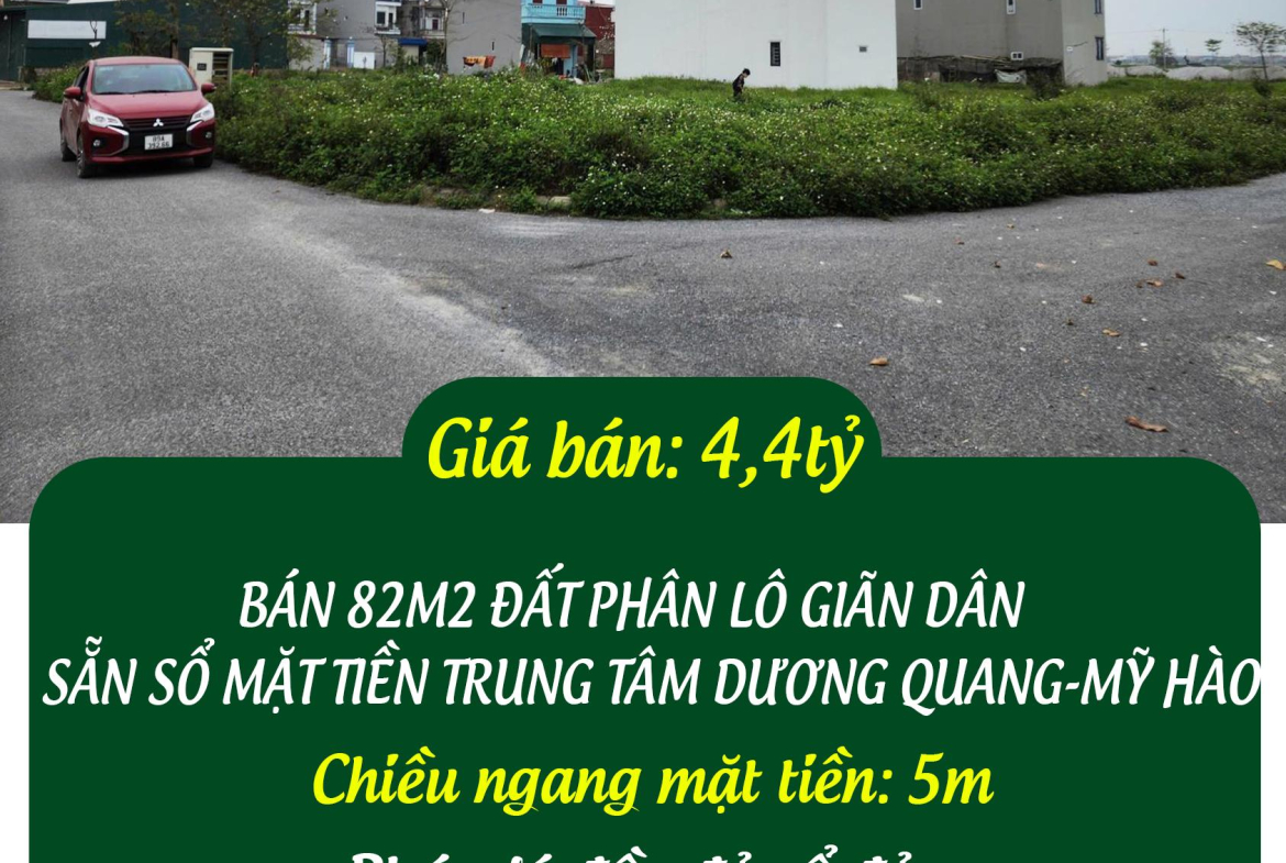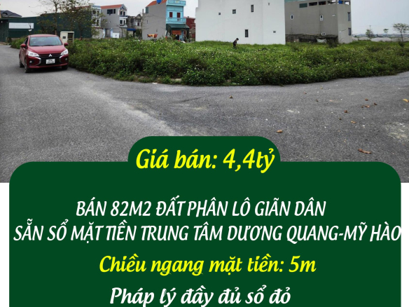 BÁN 82M2 ĐẤT PHÂN LÔ DÃN GIÂN SẴN SỔ MẶT TIỀN TRUNG TÂM DƯƠNG QUANG-MỸ HÀO