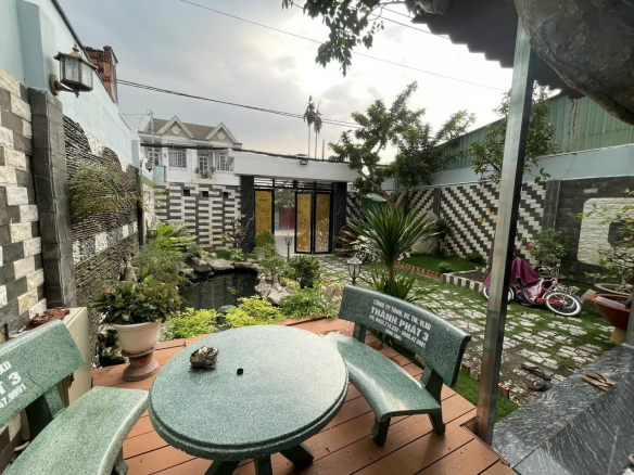 Villa mini theo phong cách cổ điển, lai tây SHR mặt tiền nhựa Nguyễn Thị Thảnh rộng 16m Diện tích 8×26 sân vườn trước, khu cafe chill chill ngắm cá koi, phòng thờ kiêm phòng khách, phòng ăn, 2 PN, 2 WC, Bếp + sân sau thoáng mát.