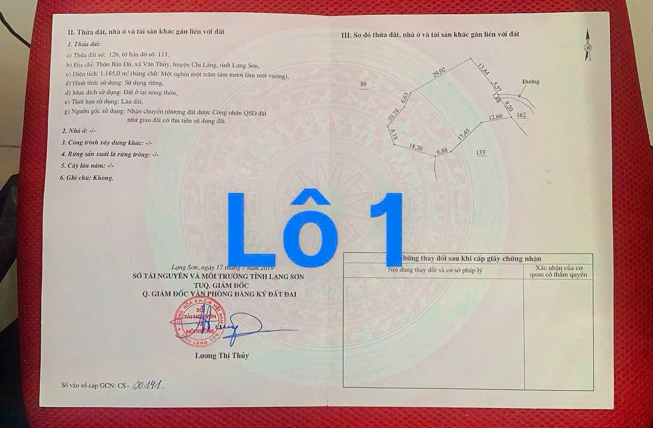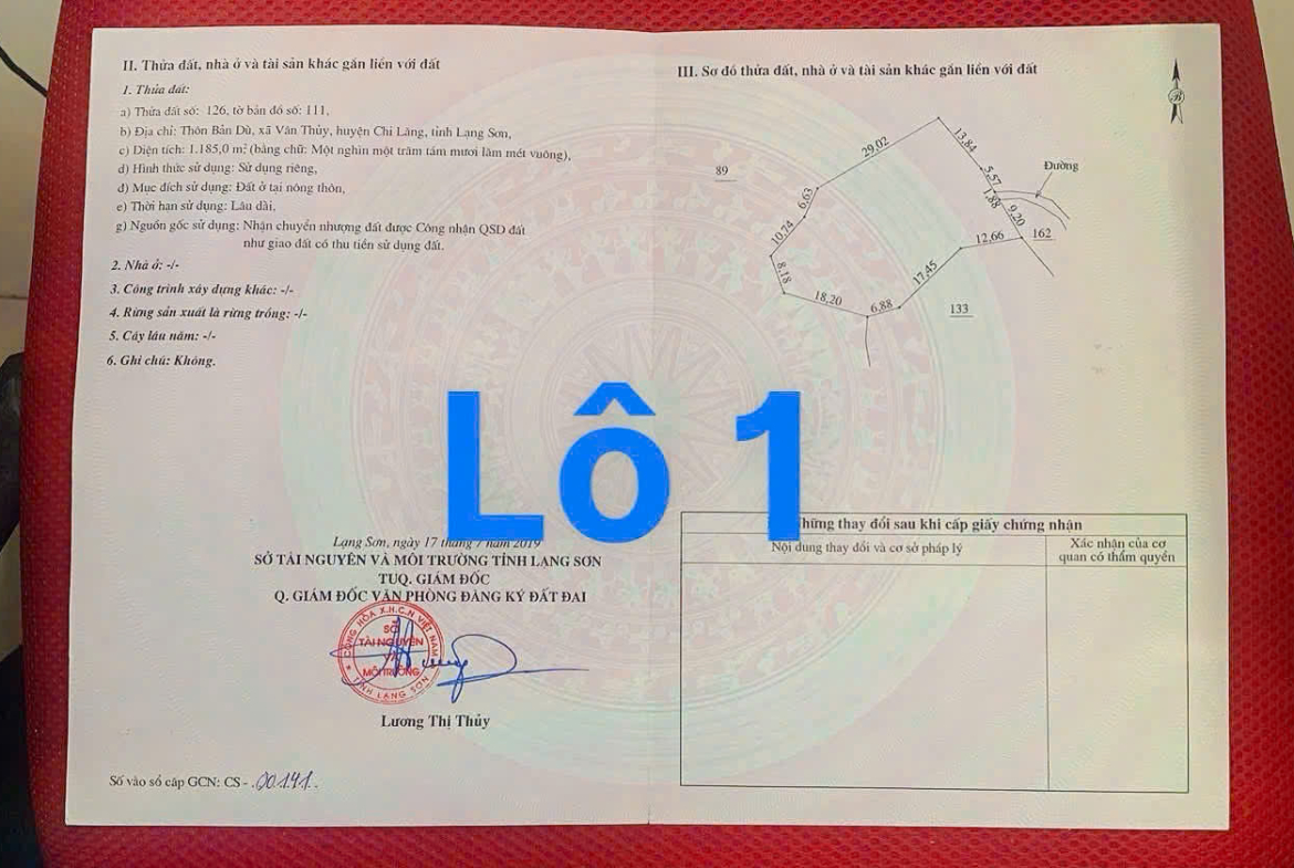 • Lô 1: Diện tích 1.185m² đất thổ cư, cách Quốc lộ 1A chỉ 30m, vị trí đẹp, tiềm năng sinh lời cao