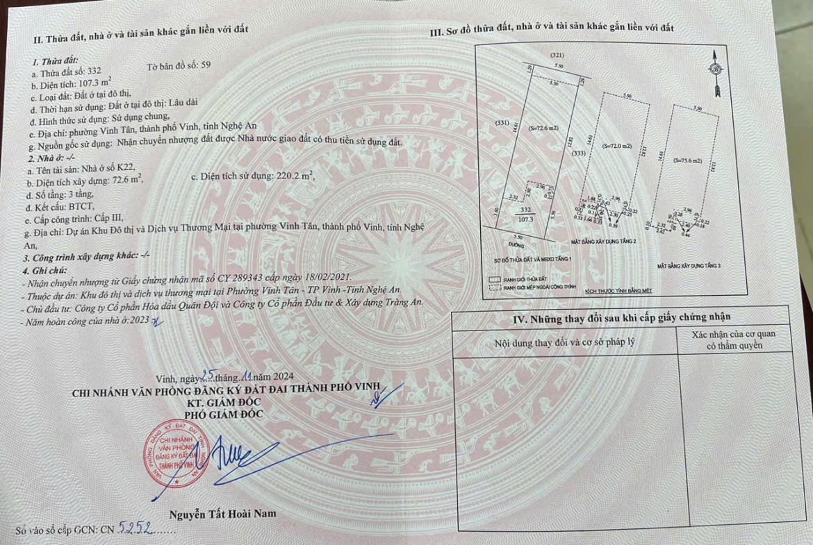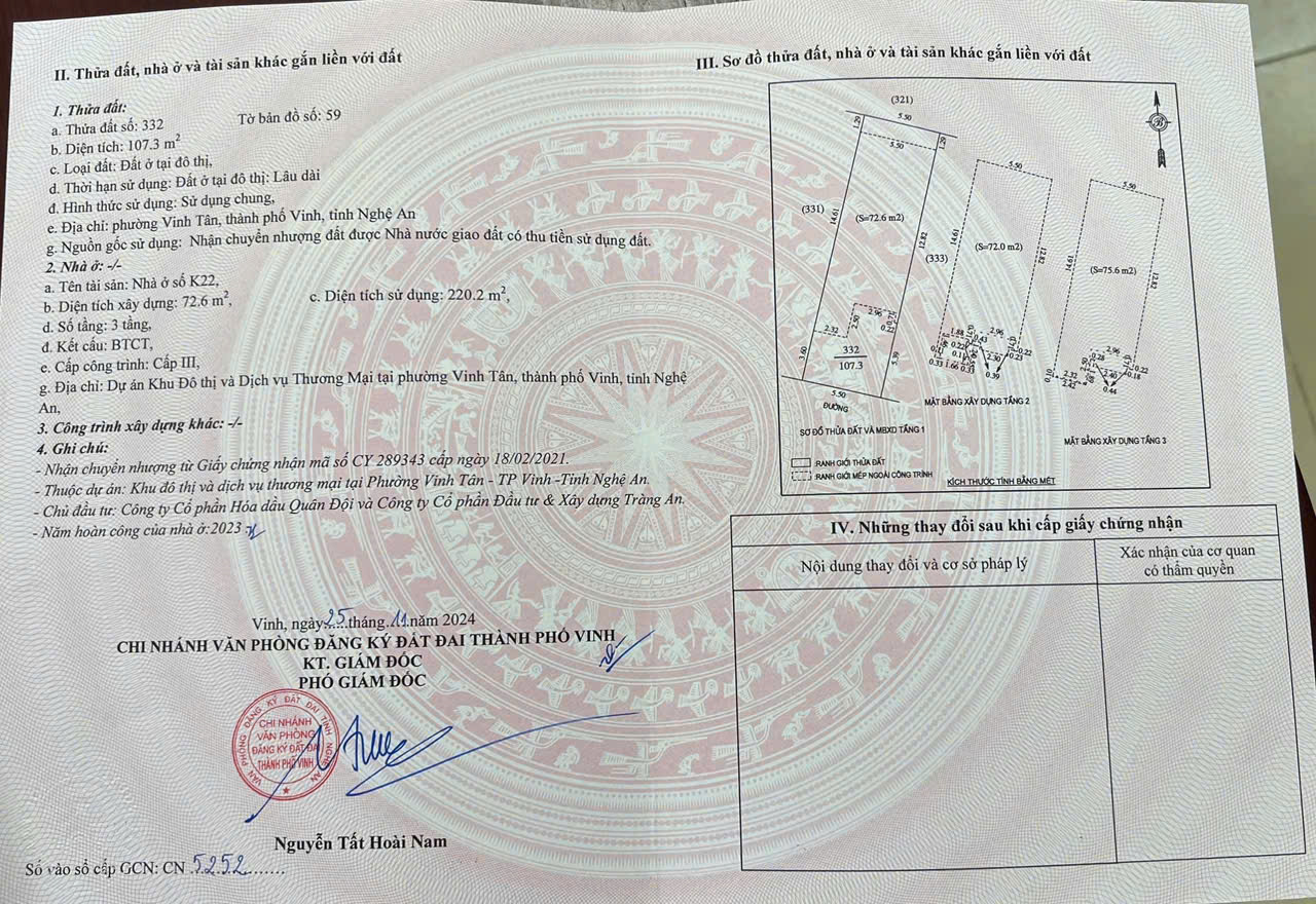 – Diện tích: 107,3m2 – Diện tích sàn 220m2