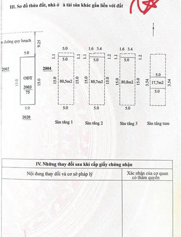 Diện tích: 75m2 – Diện tích sàn đã hoàn công và đưa vào sổ: 260m2