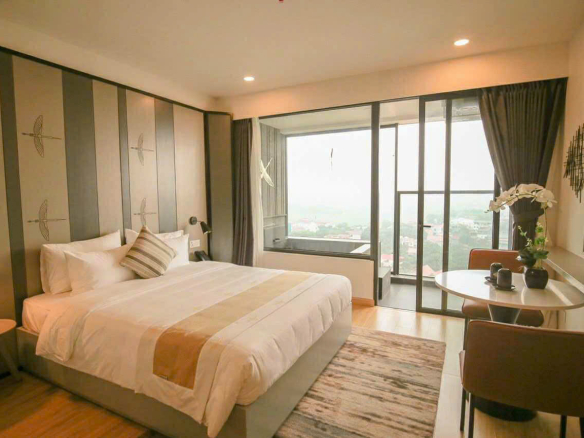 Mình có một căn condotel khoáng nóng muốn chuyển nhượng lại. Diện tích 32,4m², studio, đầy đủ nội thất tiêu chuẩn khách sạn.