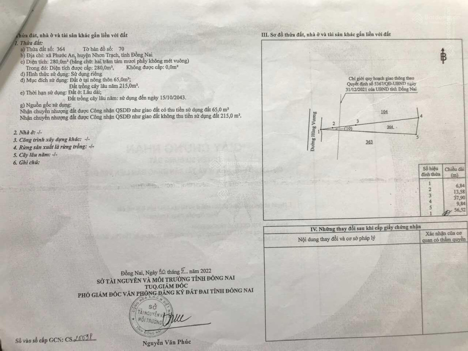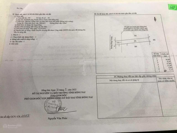 – Diện tích 668m² gồm (2 thửa 364 và 104) tờ 70. Có 65m² ONT.