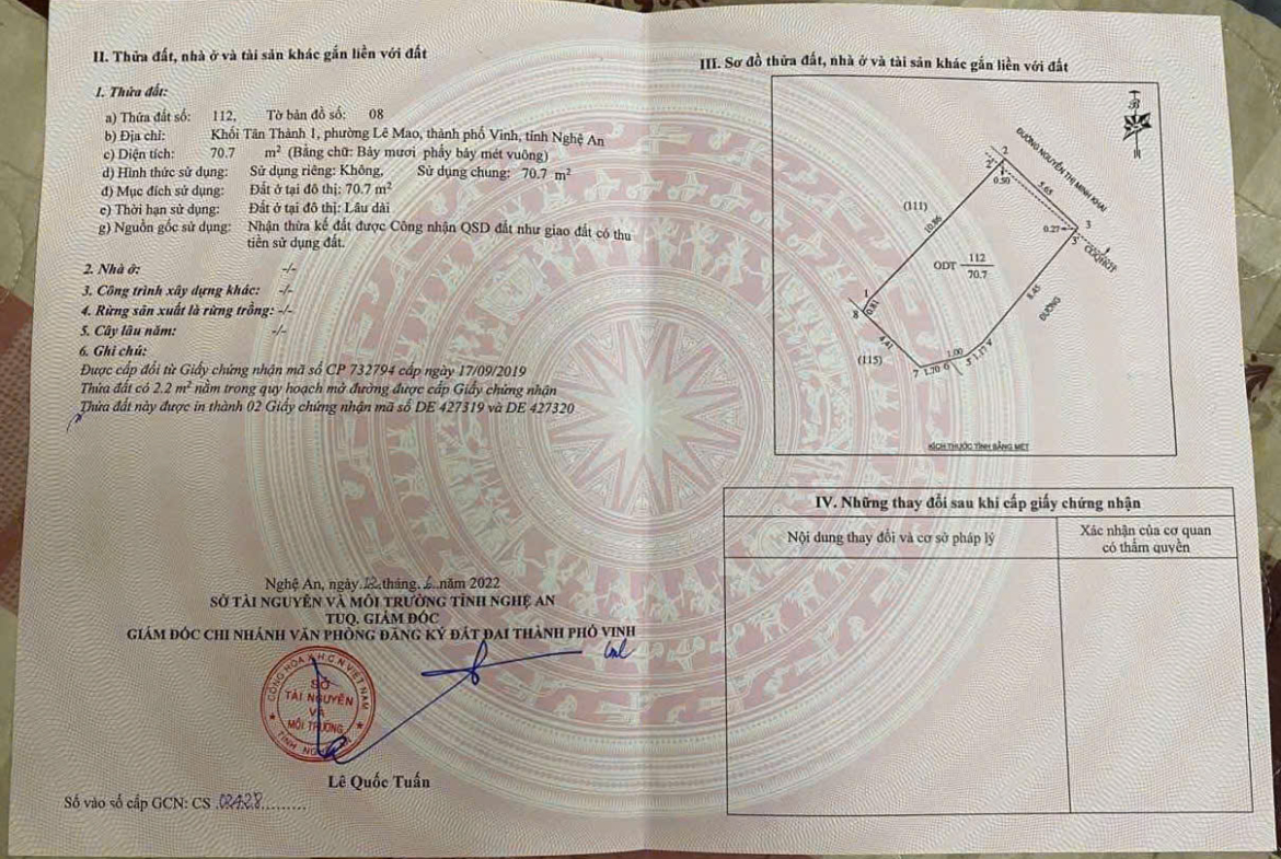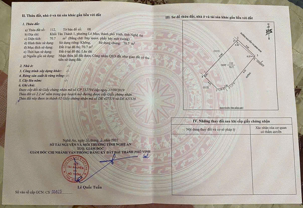 Bán đất 71m2 có Nhà 2 tầng đường Minh Khai, TP Vinh