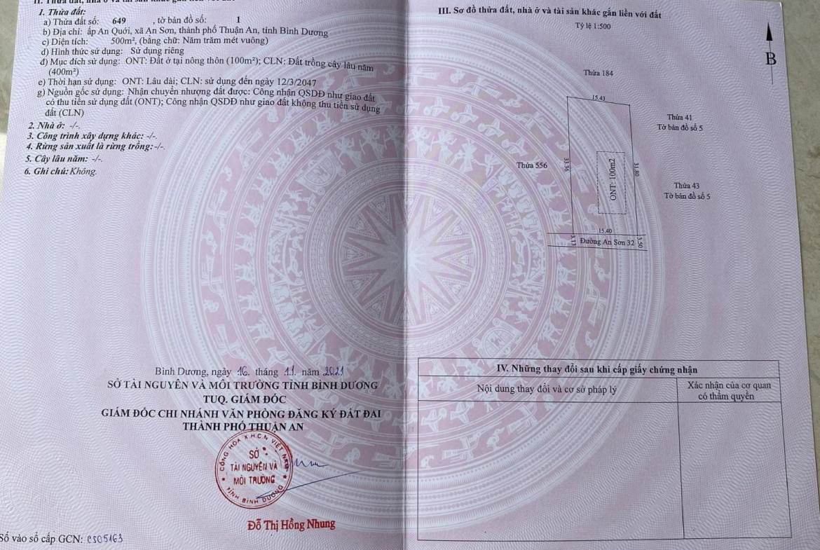 Bán Đất An Sơn32 Xã AN Sơn, Thuận An Bình Đường 500m2 Thổ Cư 100m2 Mặt Tiềng Đương 3.5 mét Sổ Hồng Riêng