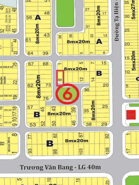 Dự án Huy Hoàng – Lô B8 2 MT – Thông tin đất: Thửa 871 Tờ 01 – Lô B8 đường số 57- Phường Thạnh Mỹ Lợi , Quận 2 – Diện Tích : 9.5 x 20m – Công Nhận : 177.5m2 – Vị Trí : Góc 2 Mặt Tiền – Đoạn Giao Bát Nàn & Tạ Hiện – Giá : 53 Tỷ = 298 Triệu / m2