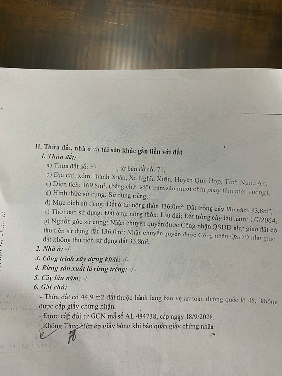 BÁN ĐẤT CHÍNH CHỦ – QUỐC LỘ 48A TẠI Nghĩa Xuân, Quỳ Hợp, Nghệ An