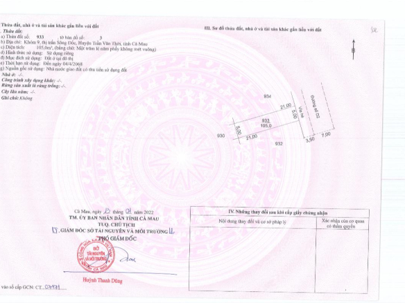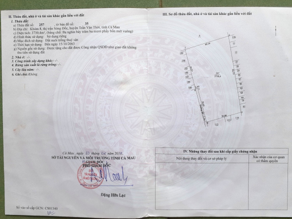 Tọa lạc tại khóm 5 Thị trấn Sông Đốc, Huyện Trần Văn Thời, Cà Mau, đây là cơ hội lý tưởng để sở hữu một lô đất với diện tích lớn.