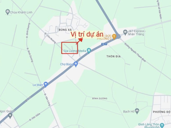 Dự án nằm ngay tại phố Bùng, trung tâm xã Bình Dương, giáp QL17, chợ Bùng, khu dân cư tập trung đông đúc…