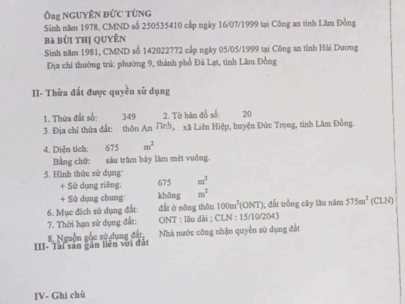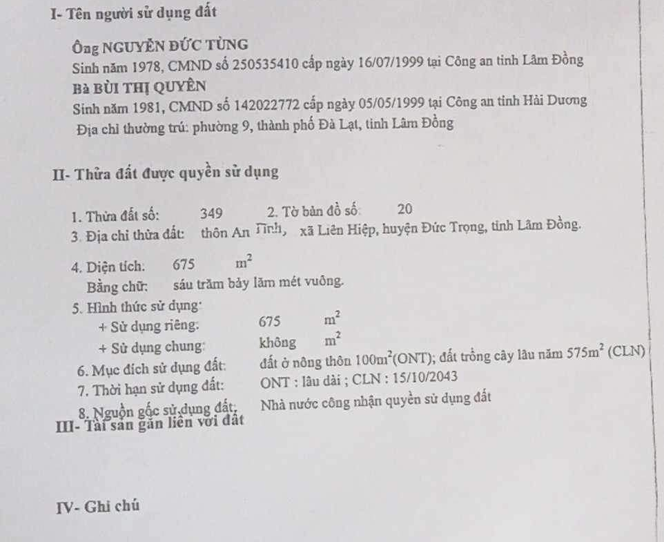 Diện tích: 675m2 có 100m thổ cư