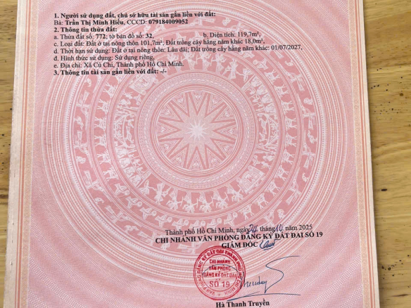 BÁN ĐẤT MẶT TIỀN ĐƯỜNG NHỰA 63 – TÂN PHÚ TRUNG ( NAY THUỘC CỦ CHI )
