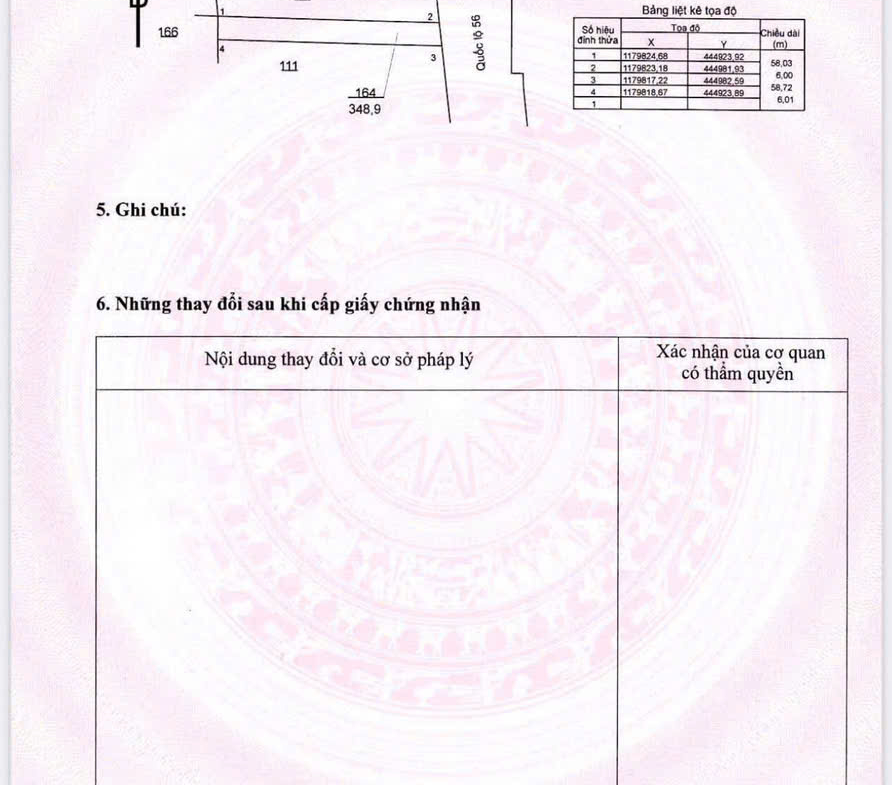 Đây chính là cơ hội hiếm: 349m² (6m x 58m), có 100m² thổ cư, sổ hồng riêng, pháp lý minh bạch.