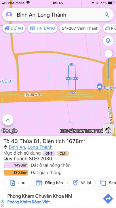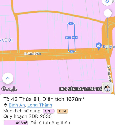 Bán đất MT đường Cầu Mên Xã Bình An Huyện Long Thành, trục chính đi vào sân bay Long Thành.