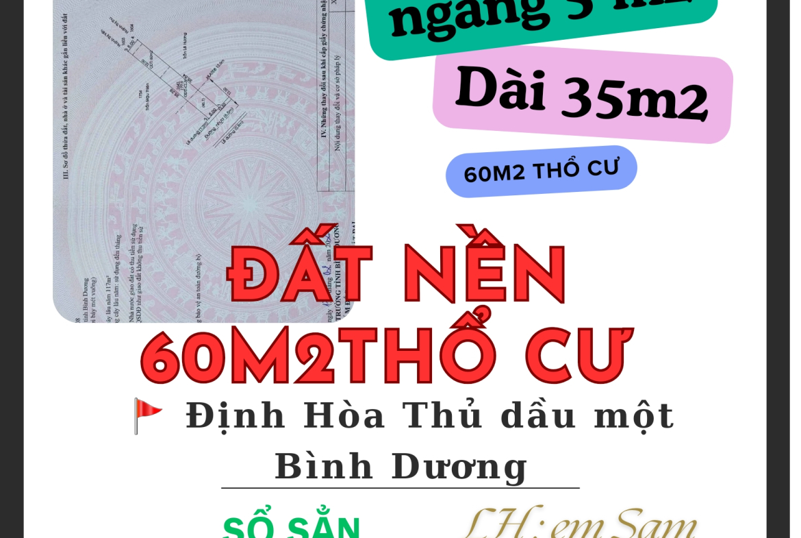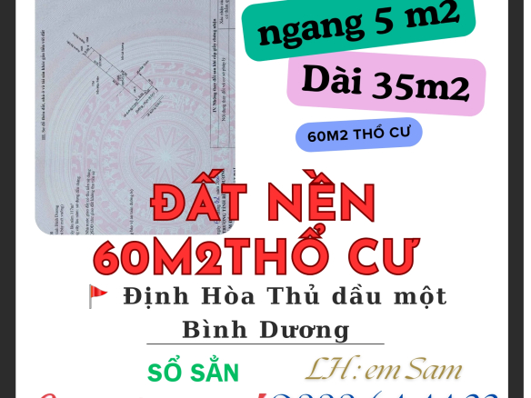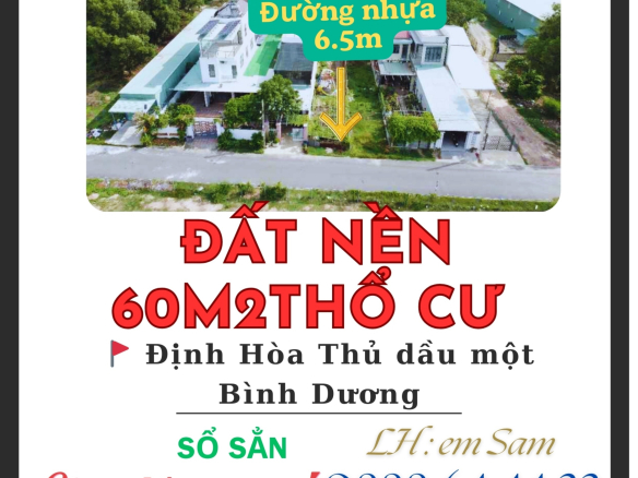 *** Diện tích 177m2, thổ cư 60m2x , ngang 5m , đường nhựa 6.5m