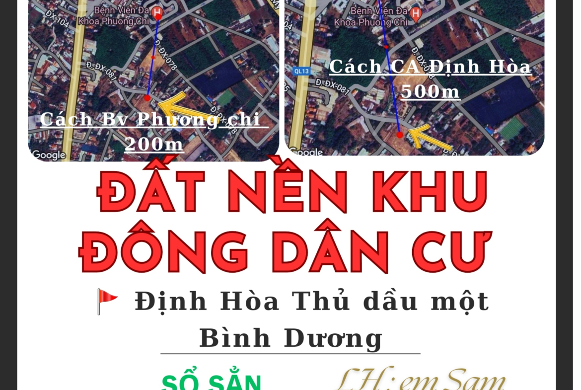 => Khu ĐÔNG dân cư, cách bv Phương chi 200m. cách Công an Định Hoà 500m, cách BV 1500 giường 800m, đầy đủ tiện ích, đi TP Mới Bình Dương chỉ tâmg 10p, xung quanh Chợ trường học đây đủ thích hợp ở hoặc Kinh Doanh. ĐẶC BIỆT HƯỚNG TÂY NAM thích hợp với người thuộc TÂY TỨ MỆNH