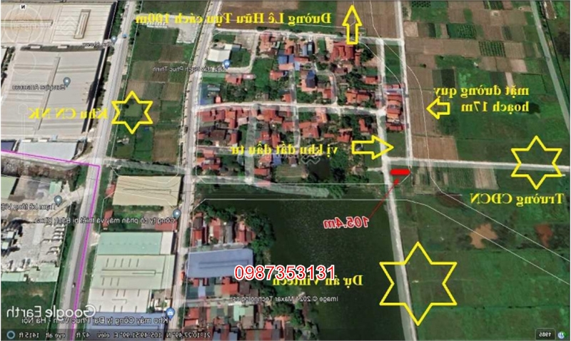 BÁN đất Nguyên Khê 105m2 , gần thị trấn Đông Anh đường thông ô tô đỗ cửa, giá chỉ 5x triệu/m2, gần dự án Vin