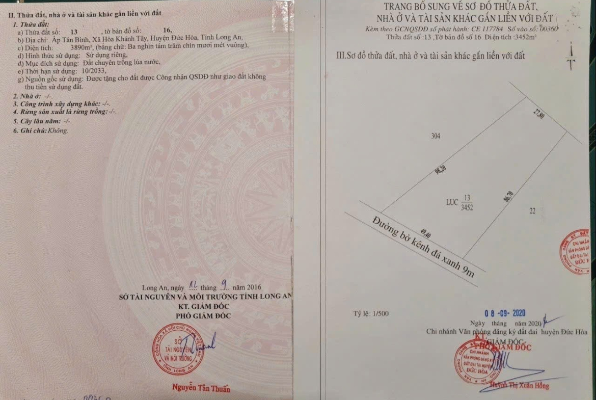 Bán đất ở Long An tổng diện tích 2 mảnh 7200 m2 giá cả thương lượng nhẹ cho người có thiện chí