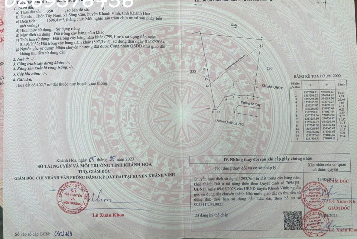 CẦN BÁN ĐẤT MẶT ĐƯỜNG QL27C (Đ.CAO BÁ QUÁT) Ở NGAY CỤM CÔNG NGHIỆP SÔNG CẦU KHÁNH HOÀ