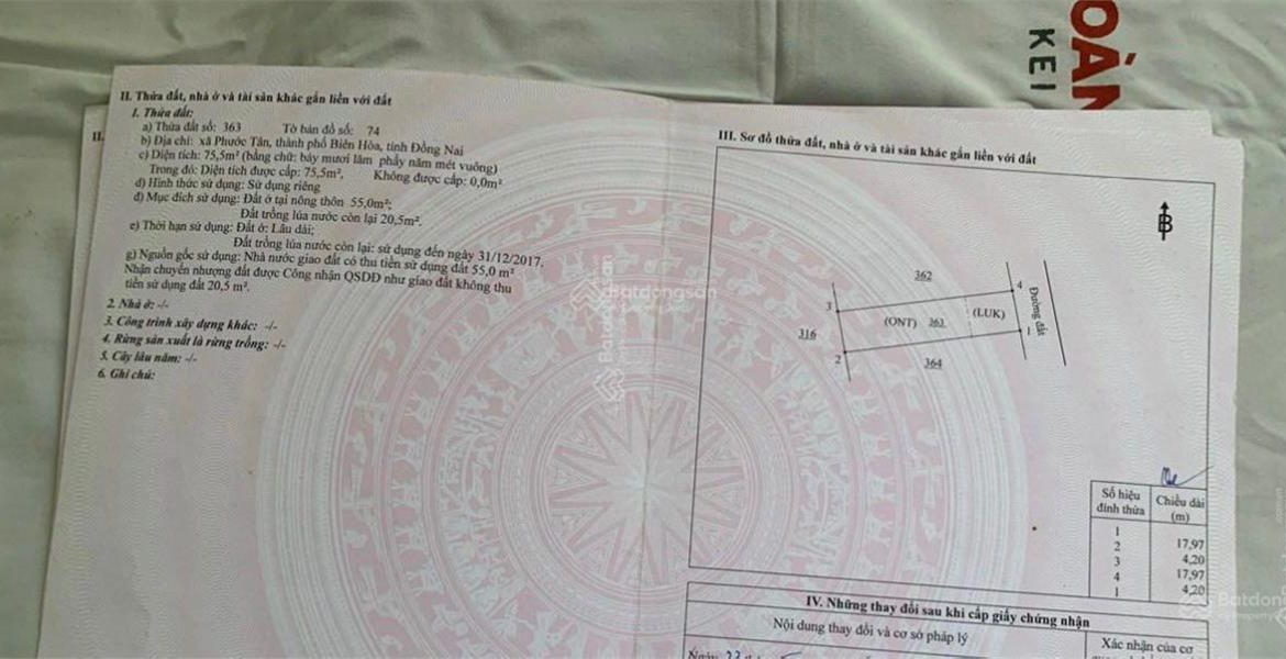 Bán đất Phước Tân, BH, ĐN.