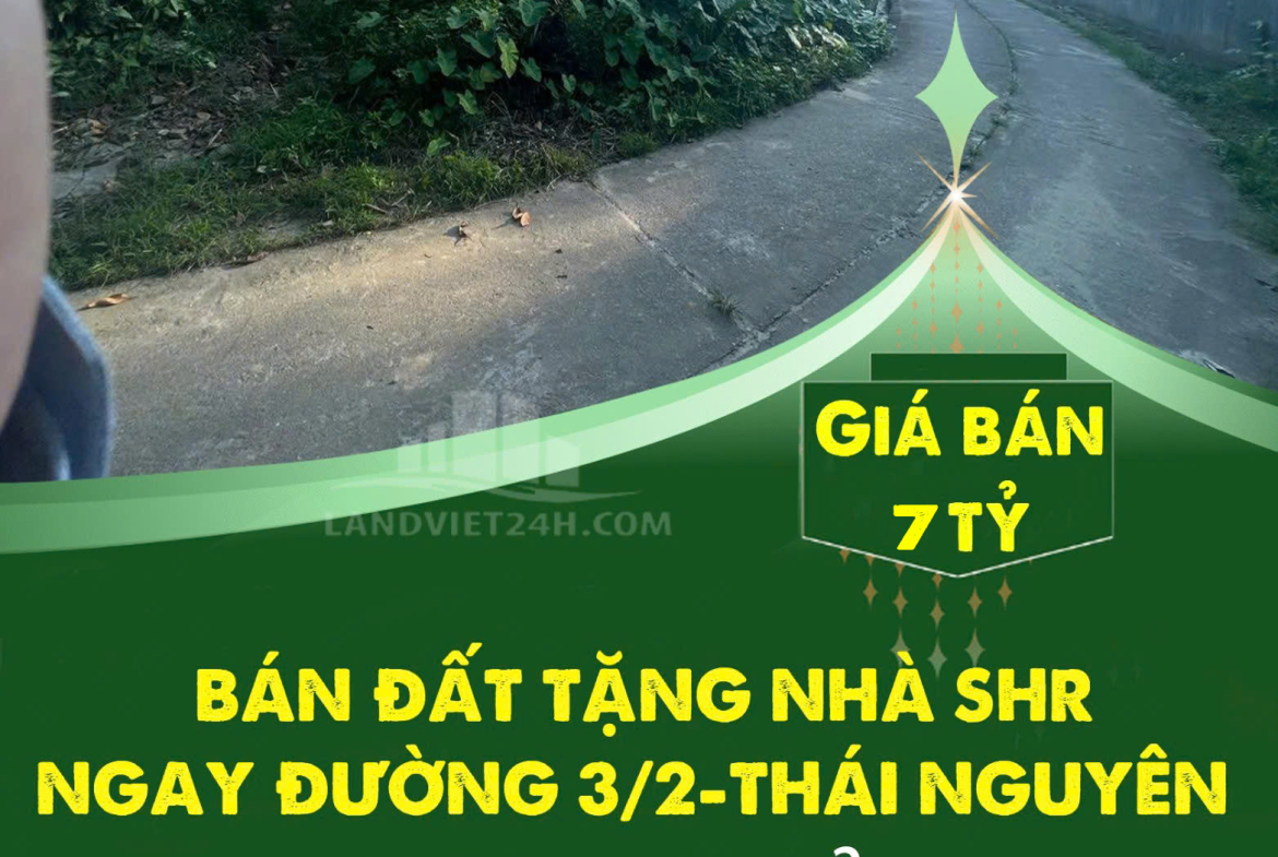 CHÍNH CHỦ BÁN ĐẤT TẶNG NHÀ SHR NGAY ĐƯỜNG 3/2-THÁI NGUYÊN