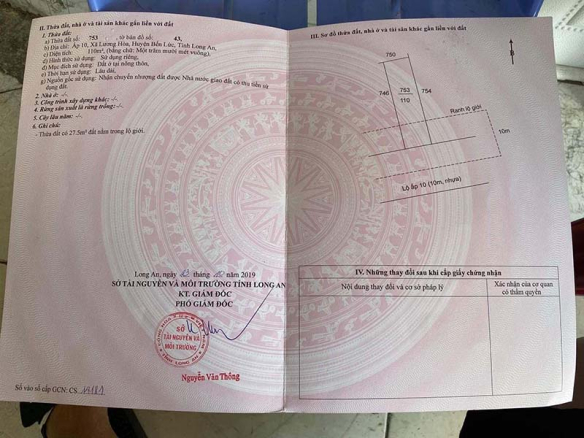 CHÍNH CHỦ BÁN ĐẤT THỔ CƯ SỔ HỒNG RIÊNG GIÁ TỐT TRUNG TÂM LƯƠNG HOÀ- BẾN LỨC