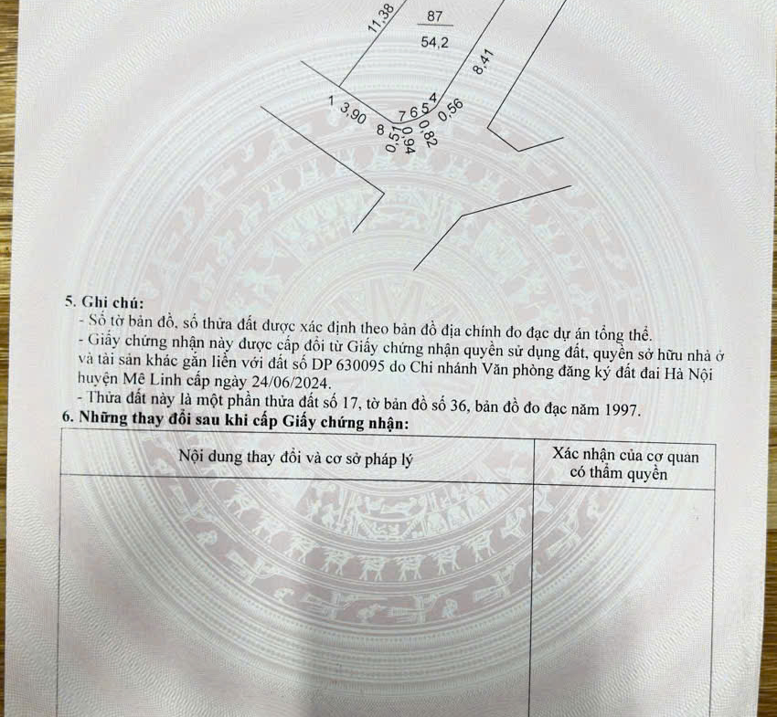 + Diện tích: 54m, mặt tiền 4,5m, hướng tây nam, full thổ cư.