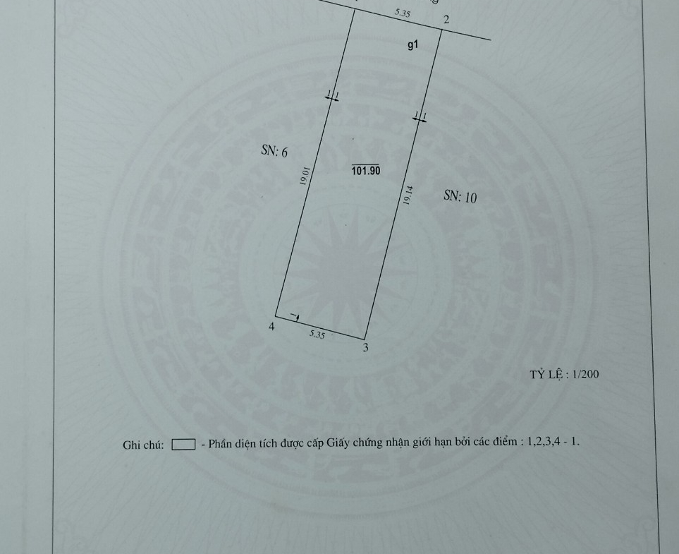 + Diện tích: 102m x Mặt tiền 5.4 m