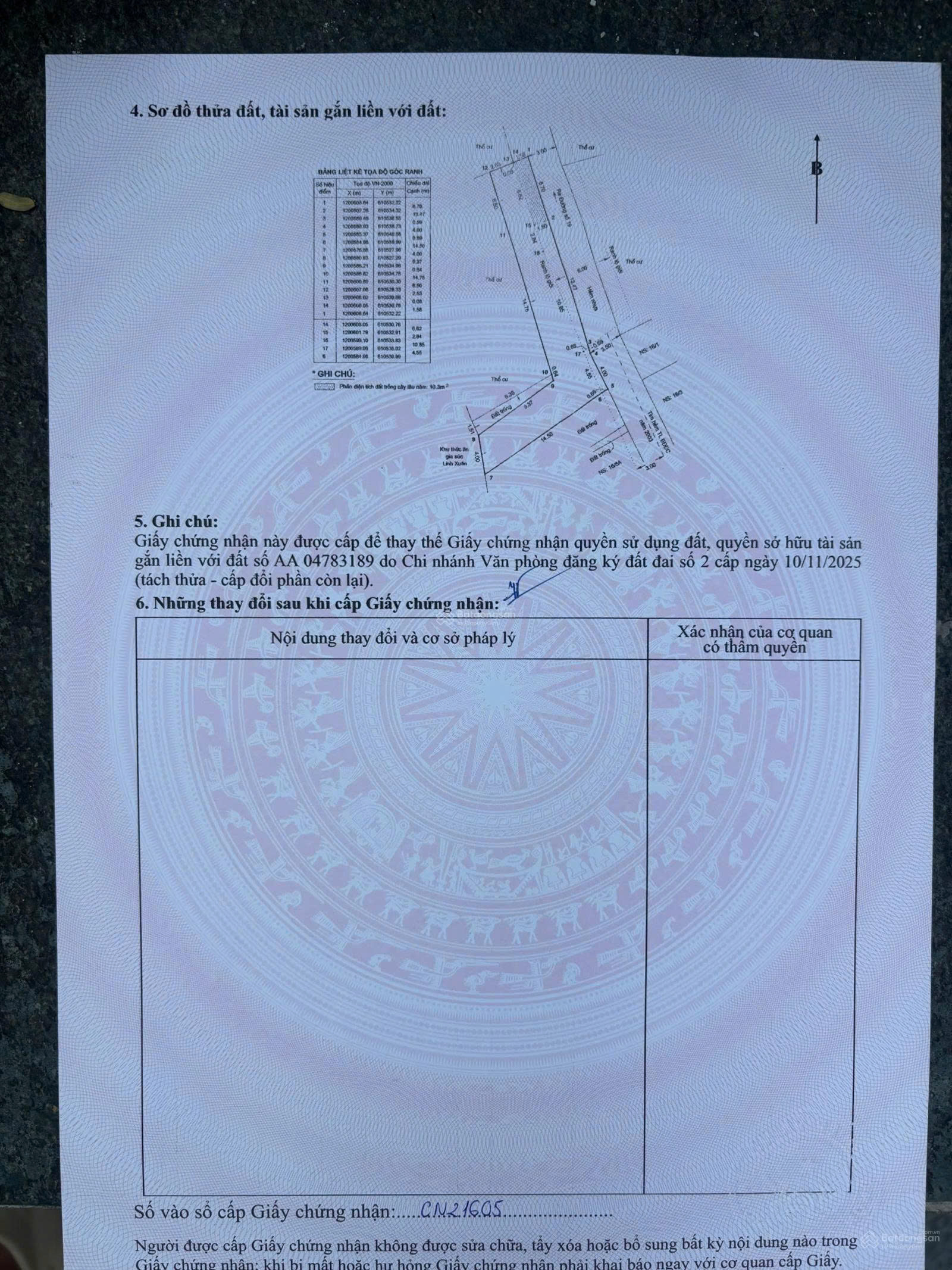 Diện tích công nhận 147m², diện tích đất sử dụng 175m².