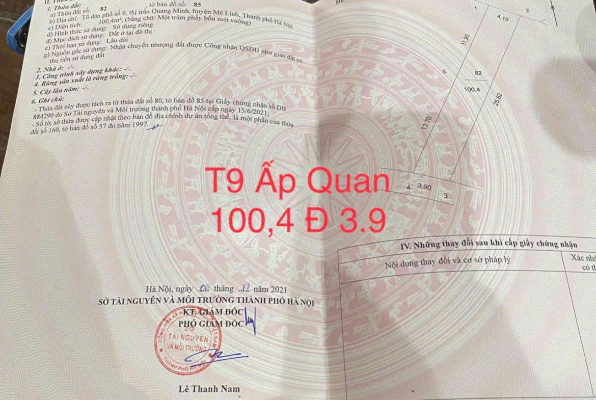 BÁN GẤP 100M MT 5,2M ẤP QUAN TT QUANG MINH,GIÁ ĐẦU TƯ,EM QUANG CHÍNH CHỦ