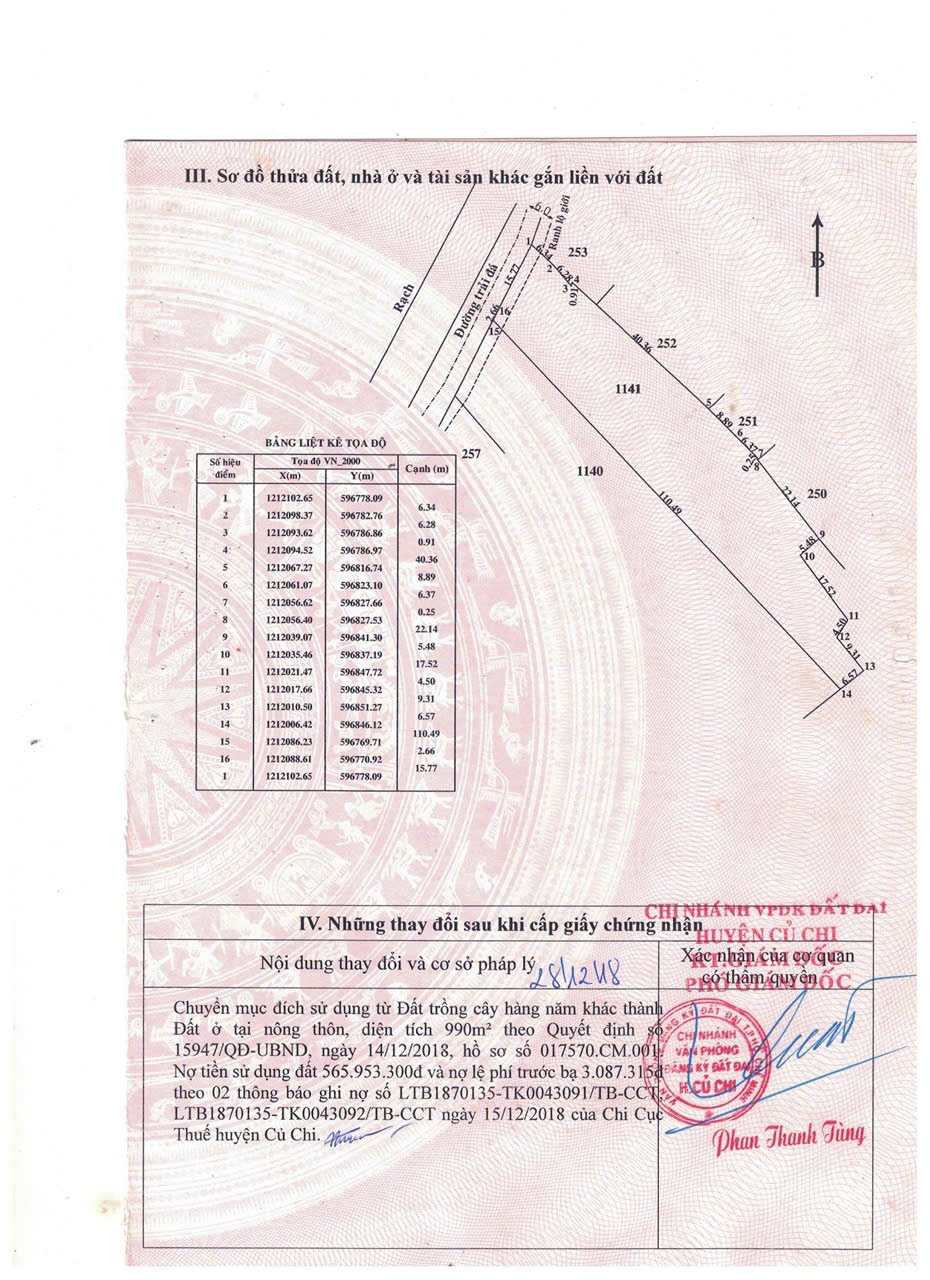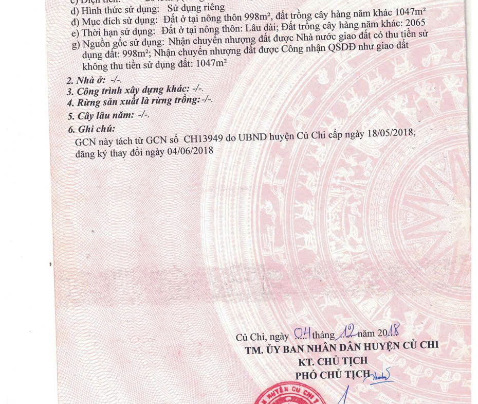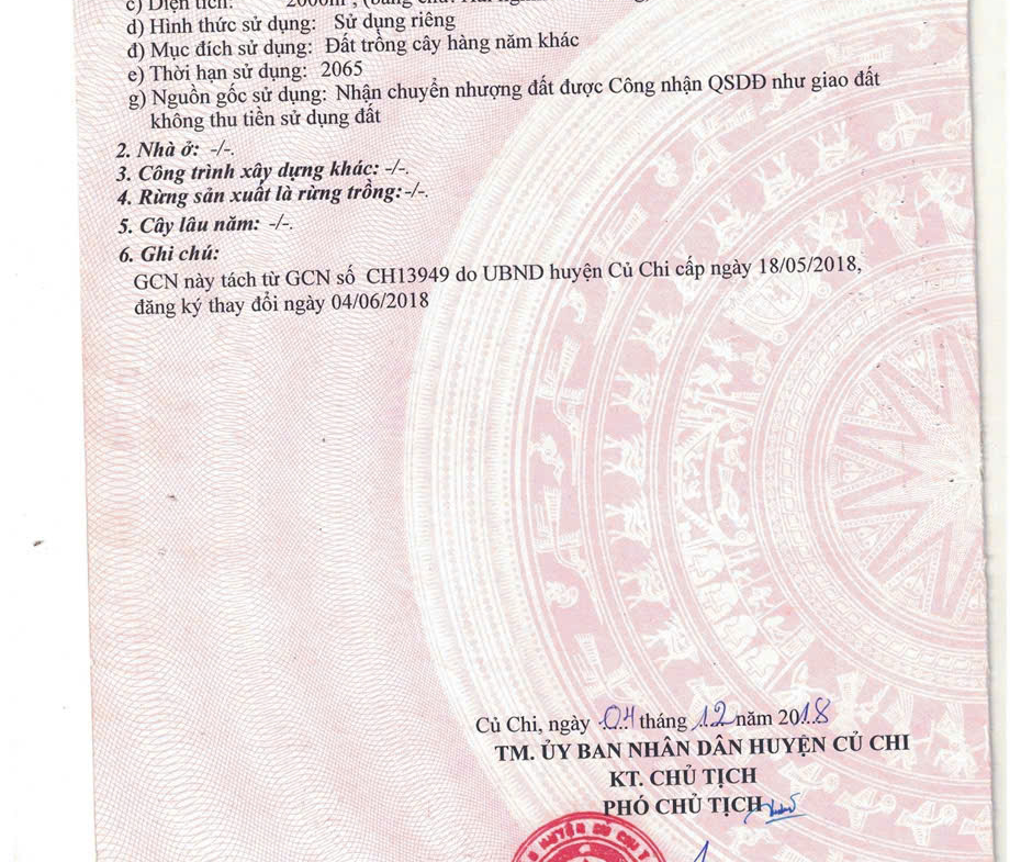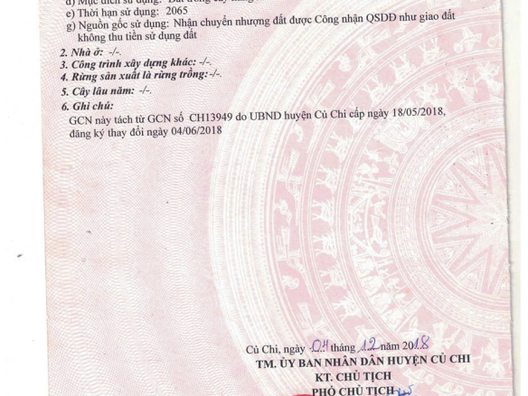 – Mục đích sử dụng: đất ở (full thổ cư: đã chuyển đổi toàn bộ diện tích sử dụng đất và hoàn thành nghĩa vụ thuế từ năm 2019)