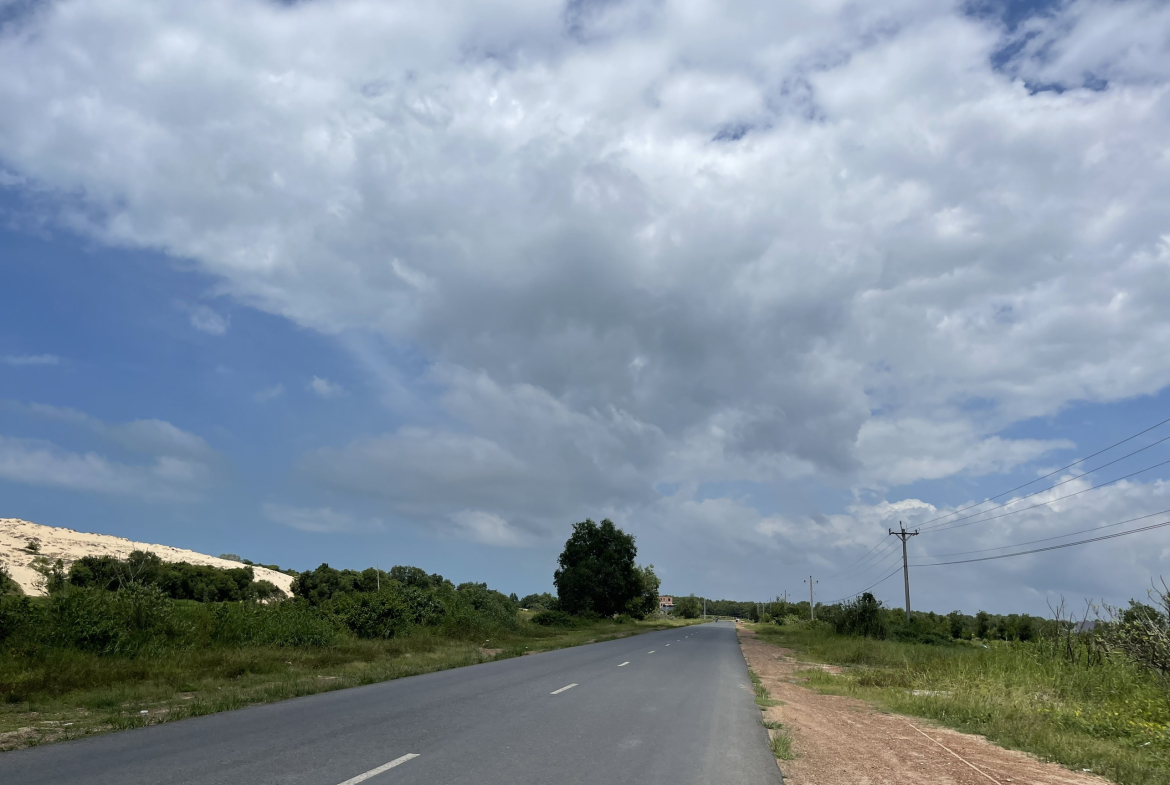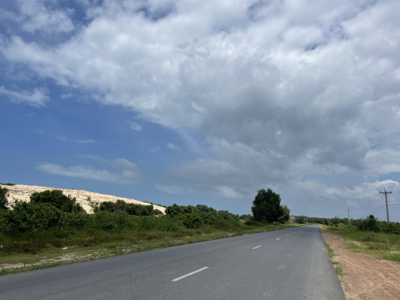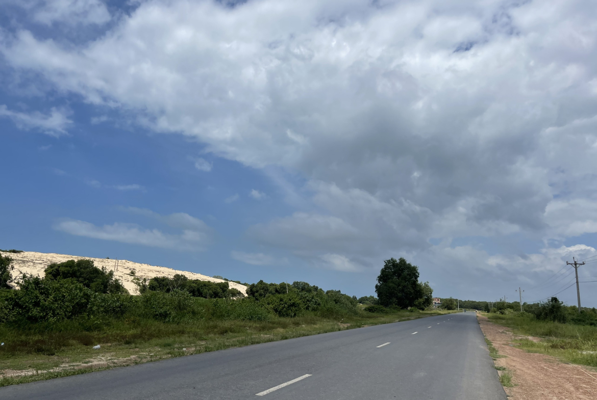 Hiện trạng: Đất bằng phẳng, mặt tiền đường nhựa rộng 42m chạy dọc theo bờ biển.
